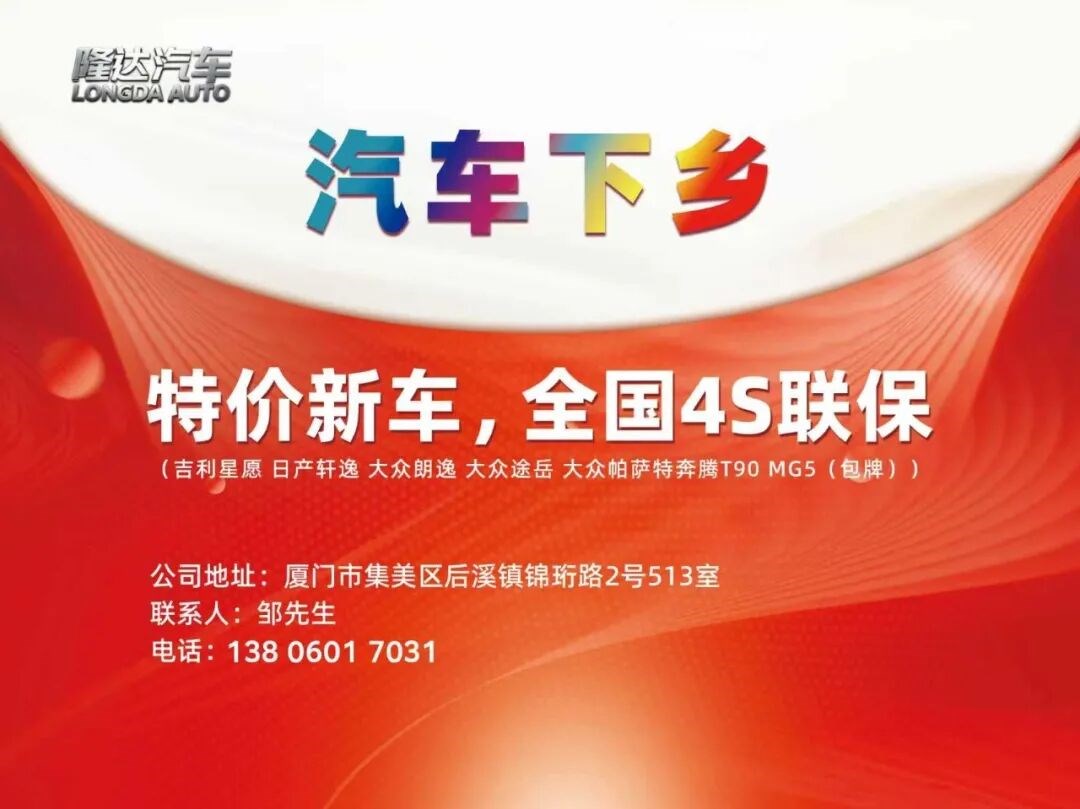 买新车上厦门隆达新车直购店全场3-7折,奥迪、奔驰、大众、日产、本田、丰田、别克、奇瑞、比亚迪、岚图、吉利、奔腾、红旗、奇瑞等……几百款车