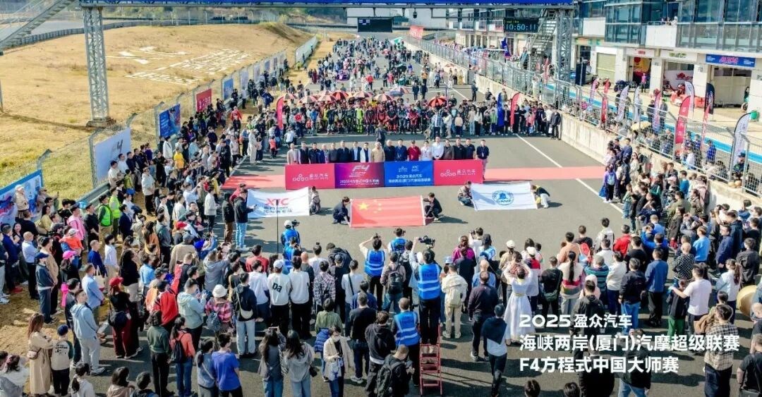 2025F4方程式中国大师赛开幕式在厦门国际赛车场隆重举办。中国汽车摩托车运动联合会专职副主席何建东,新加坡驻厦门总领事馆总领事庄志嘉,福建省体育局副局长唐佑明,厦门市体育局党组书记/局长阮敦梁,厦门报业传媒集团执行总经理章均,厦门市文化和旅游局副局长苏克,围场满族蒙古族自治县人民政府副县长韩淑杰,厦门市翔安区政协主席吴旗荣,中共翔安区委常委、组织部部长陈志泉,厦门市翔安区委台办主任林少明,厦门市翔安区文化和旅游局局长吴善营,厦门市翔安区内厝镇人民政府党委书记苏金赞,厦门市翔安区内厝镇人民政府镇长吴明昊,福建省汽车摩托车运动联合会秘书长施建功,厦门市汽车摩托车运动联合会会长赵庆华,厦门正新轮胎公司总经理许智明,铭泰赛车运动有限公司总经理王峰,盈众控股集团有限公司总经理张桂阳等嘉宾共同出席开幕式,共同见证精彩赛事上演。